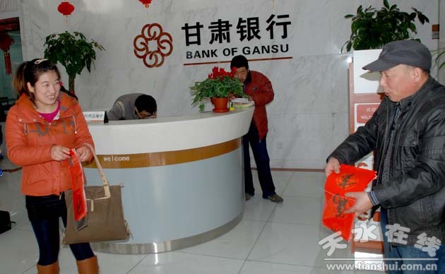 甘肅銀行秦州區(qū)支行開(kāi)展送春聯(lián)活動(dòng)(圖)