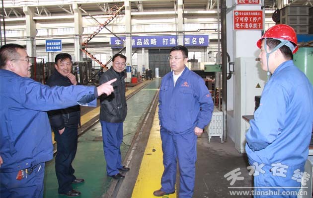 當天上午,公司中層干部以上會議結(jié)束后,公司董事長吳輝率公司總經(jīng)理楊正法及其副總經(jīng)理、總工程師等領導,深入到一分廠、二分廠、三分廠、四分廠、五分廠、綜合庫、天力公司和物業(yè)管理公司鍋爐房,進行了慰問,并就節(jié)日安全生產(chǎn)、節(jié)日加班等事宜進行了安排和部署。