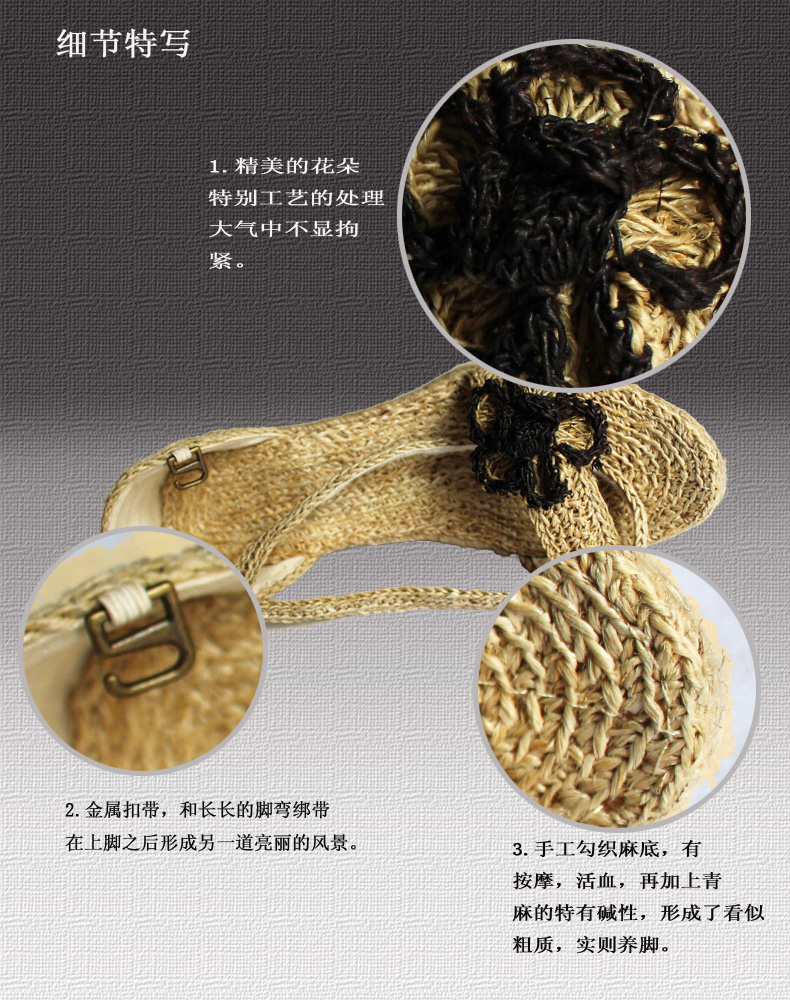 低碳環(huán)保:麻鞋是一種純天然、純手工的時(shí)尚、環(huán)保產(chǎn)品。