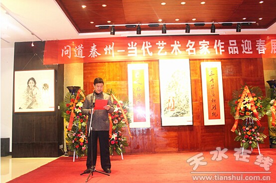 為喜迎新春佳節(jié)的到來,由甘肅東煜集團(tuán),東煜經(jīng)典文化天水公司,《經(jīng)典藏》書畫收藏與投資VIP俱樂部聯(lián)合主辦的“問道秦州----當(dāng)代藝術(shù)名家作品迎春展”于2016年1月9日早上9時(shí)在大秦藝術(shù)中心三樓藝術(shù)交流展廳隆重開幕, 主辦方東煜集團(tuán)副總裁王輝在儀式上致辭,對(duì)本次活動(dòng)情況進(jìn)行了介紹;集團(tuán)黨委書記王和平、集團(tuán)各部門領(lǐng)導(dǎo),集團(tuán)旗下各公司代表,眾多書畫愛好者前來參加,并共同見證了這次展會(huì)的開幕儀式 。展會(huì)現(xiàn)場(chǎng)人群擁集,熱鬧非凡,書畫愛好者們?cè)谶@次高水平的畫展中一飽眼福、收獲到了更高境界的精神食糧,是東煜集團(tuán)、東煜經(jīng)典文化公司當(dāng)代名家作品的全新展示,更是東煜集團(tuán)為天水人民喜迎新春佳節(jié)呈現(xiàn)的一個(gè)文化盛宴。本次展覽于2月1曰結(jié)束。