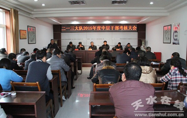 為實事求是地了解大隊中層干部一年來的學習、工作、生產(chǎn)等情況,及時總結(jié)經(jīng)驗,查找不足,確定今后的努力方向,2016年1月14-15日,二一三大隊召開了二〇一五年度中層干部考核大會。大隊長兼黨委負責人王正堂主持了會議。大隊領(lǐng)導(dǎo)、全體中層干部、機關(guān)科室人員及生產(chǎn)經(jīng)營單位職工參加了此次考核會。