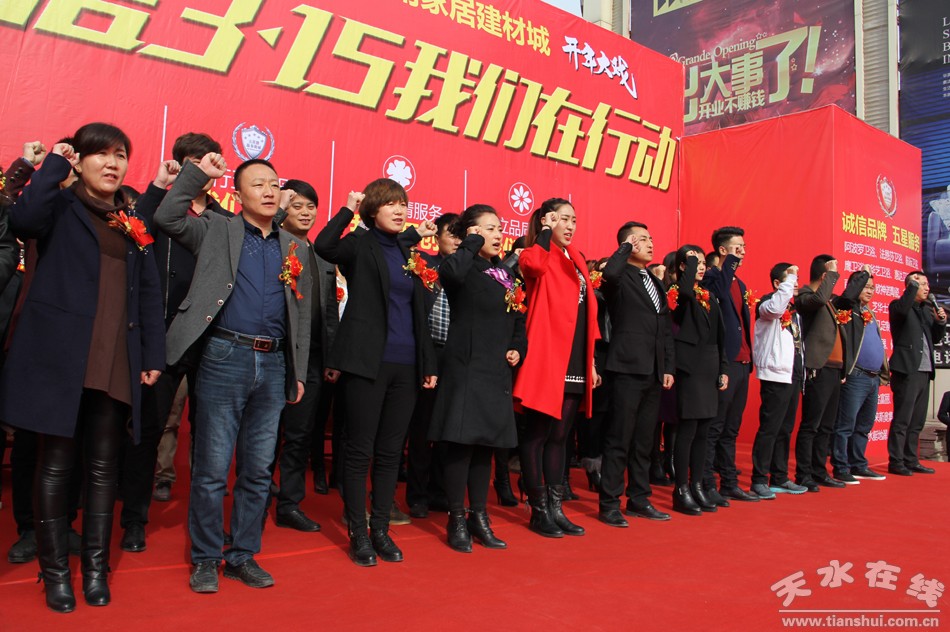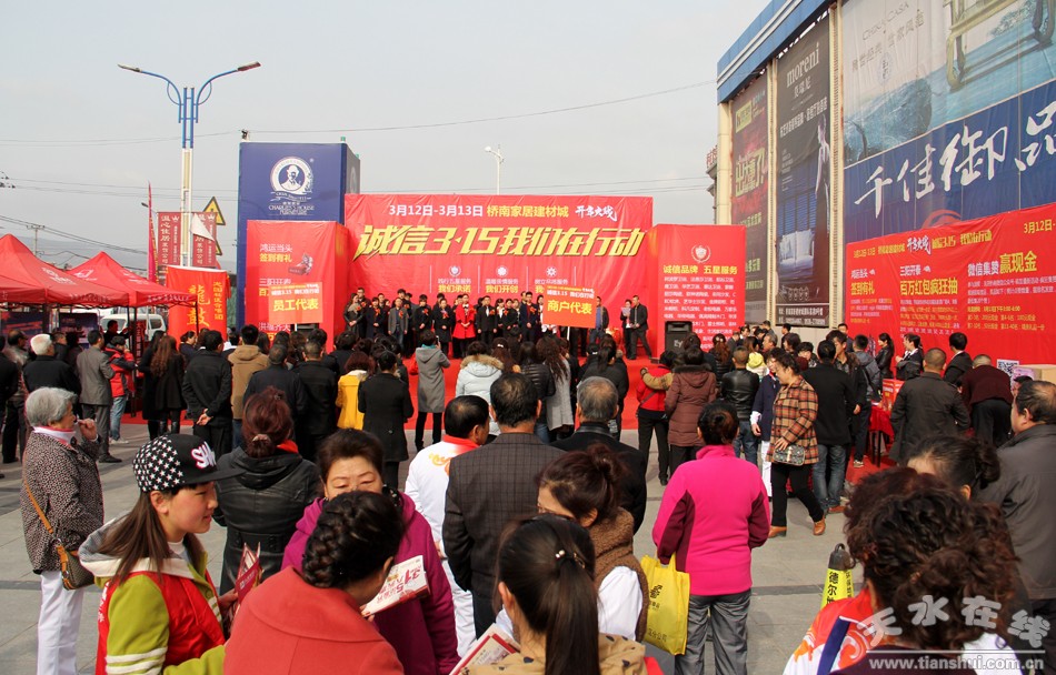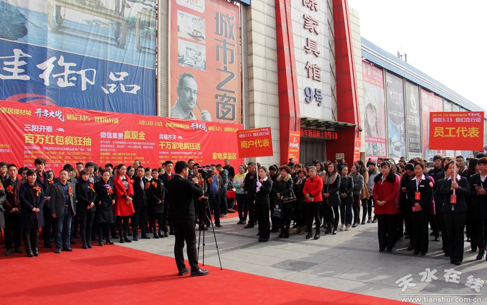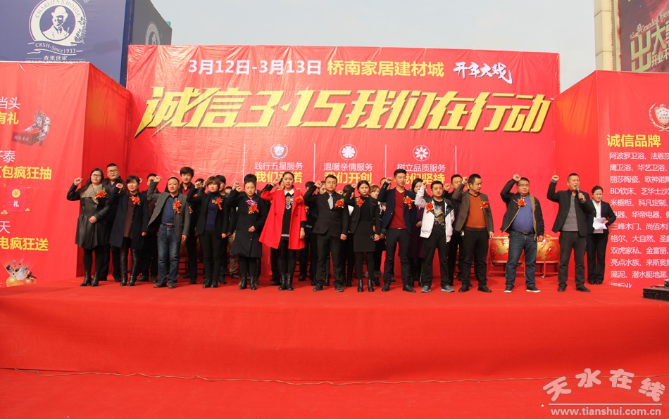 3月12日,天水橋南家居建材城組織品牌商戶(hù)舉行了“誠(chéng)信品牌 五星服務(wù)3·15誠(chéng)信宣言”活動(dòng),共有31戶(hù)品牌商戶(hù)參加了此次活動(dòng)。