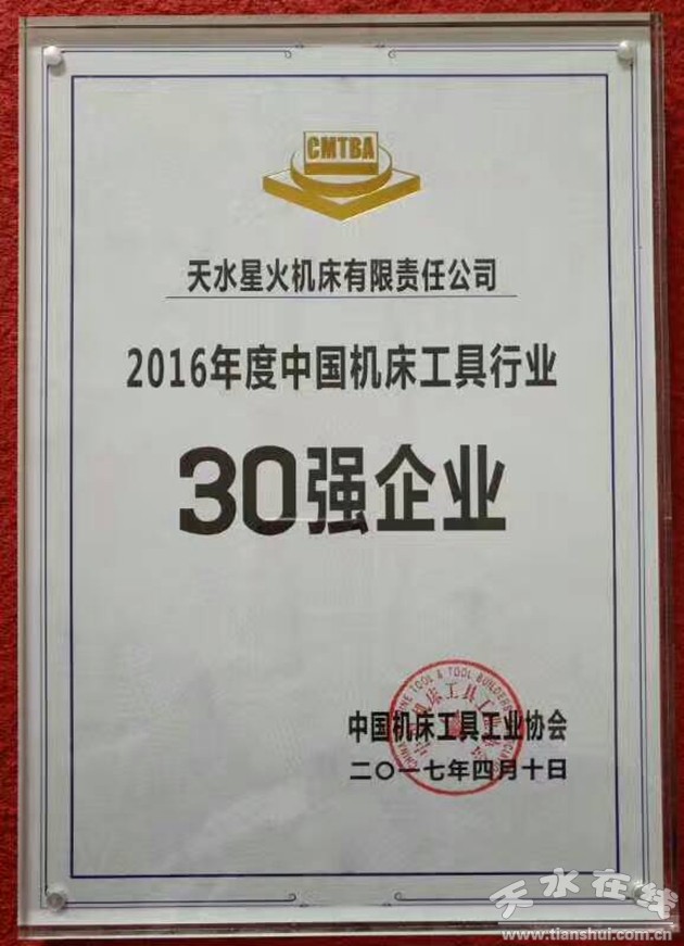 4月17日,第十五屆中國國際機床展覽會(CIMT2017)在北京中國國際展覽中心隆重開幕。展會開幕當天,主辦方發(fā)布了2016年度中國機床工具行業(yè)“30強”企業(yè)名單,星火機床公司獲此殊榮。中國機床工具工業(yè)協(xié)會常務副理事長兼秘書長陳惠仁為獲獎企業(yè)頒發(fā)了獎牌。