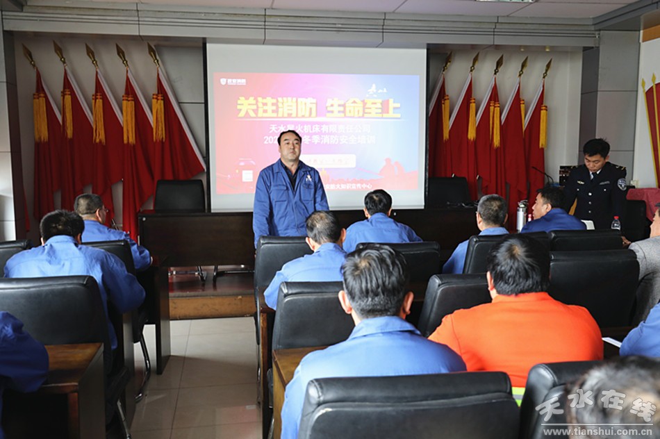 11月12日,星火機床公司邀請?zhí)m州政安防火知識宣傳中心天水分中心高級教官王維宗來公司舉辦以《關(guān)注消防、生命至上》為主題的消防安全知識講座,開展消防滅火演練,進一步強化職工消防安全知識,提高消防安全意識,提升消防安全素質(zhì),增強火災(zāi)防控能力。公司各單位主管安全的領(lǐng)導(dǎo)、安全員、消防員、設(shè)備員等80多人參加。物業(yè)公司經(jīng)理張巨宏主持。