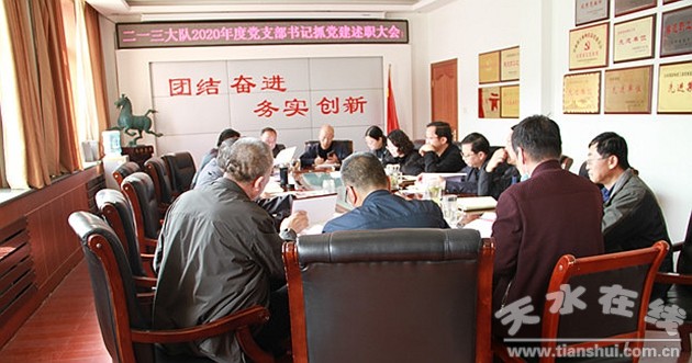 會上,各黨支部書記就學習貫徹習近平新時代中國特色社會主義思想,落實大隊黨委重點任務,完成《全面從嚴治黨支部工作目標責任書》情況進行了述職,提出2021年的工作計劃。政工辦主任進行了現(xiàn)場點評,指出各黨支部黨建工作的亮點特色與不足,對下一步工作提出意見建議。