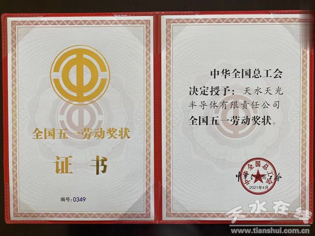 ·天光半導(dǎo)體公司榮獲“全國(guó)五一勞動(dòng)獎(jiǎng)狀”(圖)