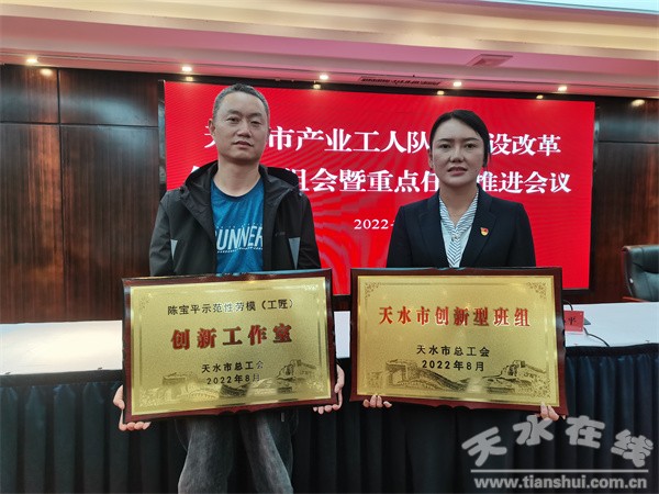 8月30日,全市2022年產業(yè)工人隊伍建設改革領導小組會暨重點任務推進會議在天水賓館召開。會上,命名和表彰了市級勞模(工匠)創(chuàng)新工作室、創(chuàng)新型班組、職工優(yōu)秀創(chuàng)新成果等。