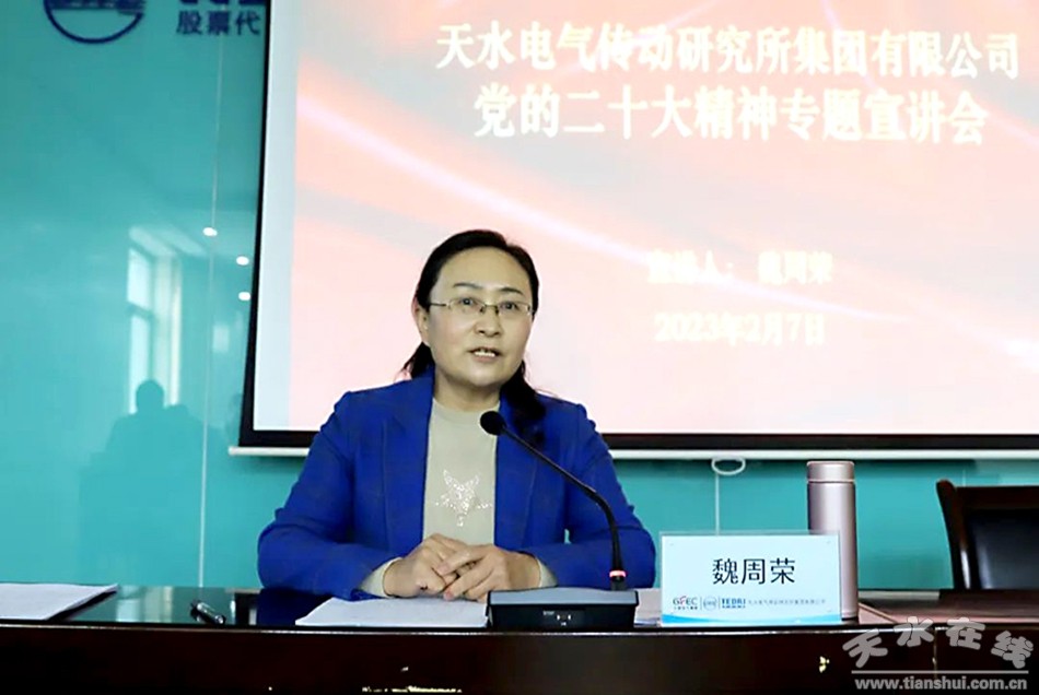 為推動黨的二十大精神深入基層,直通一線,2月7日,甘肅電氣集團黨委副書記、工會主席魏周榮到長城電工天水電氣傳動研究所集團有限公司宣講黨的二十大精神。天傳所集團公司公司領(lǐng)導(dǎo)班子成員、中層干部、支部書記及支委成員參加了宣講會。
