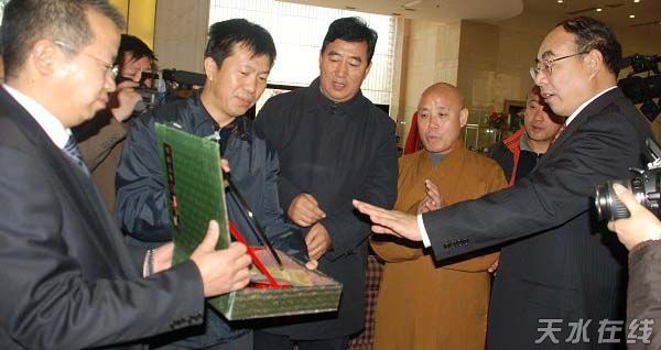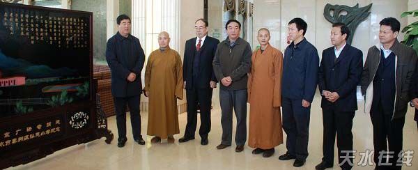 天水市委、市政府為北京廣濟(jì)寺贈送以“弘慈小學(xué)校園”為主題創(chuàng)作的雕漆屏風(fēng)。