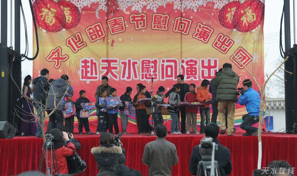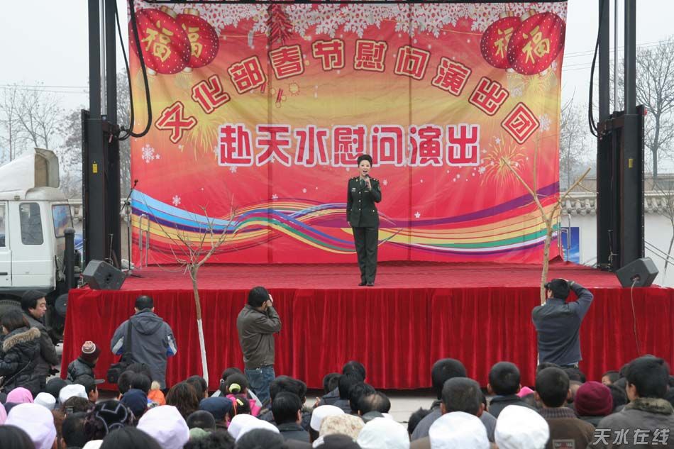 (天水在線 秦州區(qū)委宣傳部聯(lián)合報(bào)道)正月初六上午,帶著黨中央、國(guó)務(wù)院對(duì)災(zāi)區(qū)人民的問(wèn)候,由文化部組織的赴地震災(zāi)區(qū)慰問(wèn)團(tuán)在甘肅省天水市秦州區(qū)進(jìn)行慰問(wèn)演出。