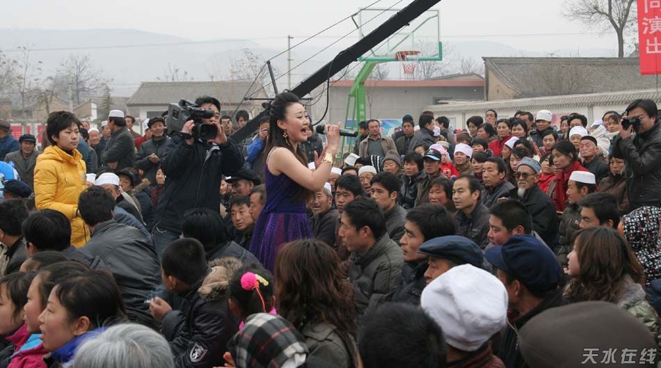 今天是正月初六,氣溫驟降,可在天水市秦州區(qū)太京鎮(zhèn)窩駝村籃球場(chǎng)內(nèi)聚滿了本村和鄰村的群眾,顯得熱鬧非凡,他們正在等待文化部組織的春節(jié)期間赴災(zāi)區(qū)慰問(wèn)團(tuán)小分隊(duì)的到來(lái),上午9時(shí),來(lái)自中央民族樂(lè)團(tuán)、總政歌舞團(tuán)、海政歌舞團(tuán)等6位藝術(shù)家、著名歌手到這里進(jìn)行了慰問(wèn)演出,中央民族樂(lè)團(tuán)的青年歌手吳靜不顧嚴(yán)寒,穿著演出服與村民們互動(dòng)演出,贏得了村民的贊賞,村民楊世堂激動(dòng)的說(shuō),“這些藝術(shù)家的演唱以前我們都只能在電視上看到,做夢(mèng)都沒(méi)想到今天能來(lái)到我們村,在節(jié)日期間為我們送來(lái)了這么好聽的歌,雖然5.12特大地震給我們帶來(lái)了災(zāi)害,但在他們的鼓舞下我們更要樹立起重建家園的信心”。一個(gè)多小時(shí)的演出給全村的老百姓留下了難忘的一刻。