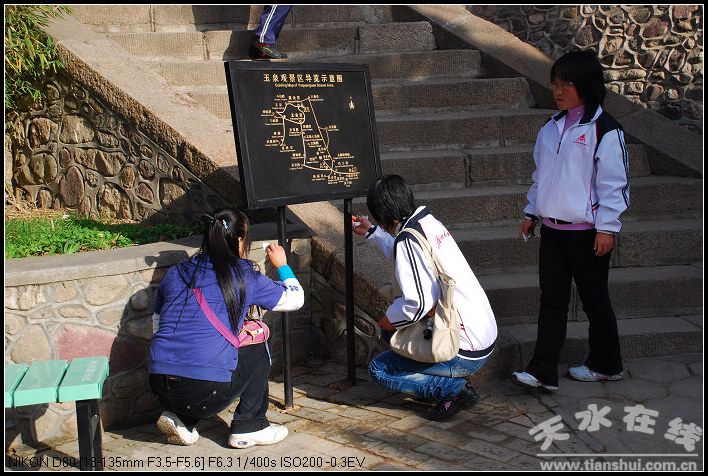 圖為天水師范學(xué)院的志愿者正在擦洗《玉泉觀示意圖》牌