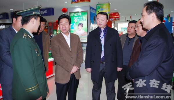 。ㄇ刂輩^(qū)委宣傳部 石蒼林)2月6日上午,天水市委常委、秦州區(qū)委書記張明泰帶領(lǐng)區(qū)四大組織領(lǐng)導(dǎo)深入天水綜合批發(fā)市場、森美超市、寶商佳美家超市、天水綠源食品有限公司、益康定點屠宰廠等商場和企業(yè),對春節(jié)前市場食品衛(wèi)生安全工作進行了全面檢查。