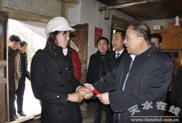 在中華民族傳統(tǒng)佳節(jié)春節(jié)來(lái)臨之際,1月18日,副市長(zhǎng)彭鴻嘉在市農(nóng)業(yè)局、市水務(wù)局、市民政局、市扶貧辦以及秦州區(qū)相關(guān)部門負(fù)責(zé)人的陪同下,深入秦州區(qū)娘娘壩鎮(zhèn)柳林村災(zāi)區(qū),親切看望慰問(wèn)災(zāi)區(qū)群眾,為他們送去節(jié)日的問(wèn)候和祝福。
