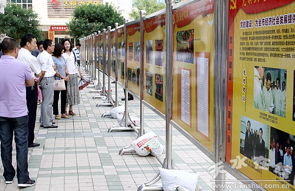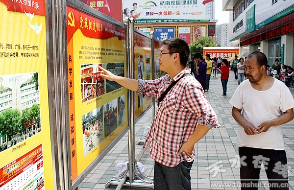 。ㄇ刂輩^(qū)外宣辦 劉可)6月18日起,由市委、市政府主辦,市委宣傳部、組織部等部門共同承辦的“黨旗飄過90年---天水市慶祝中國共產(chǎn)黨成立90周年大型圖片展”,在秦州區(qū)龍城廣場展出。兩天來,秦州區(qū)組織近萬名干部職工和各界群眾參觀了圖片展覽!