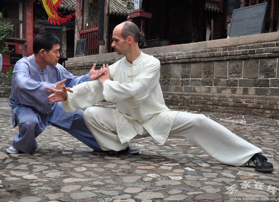 旁邊的師父沈西京說:“托比(中國朋友都這樣稱呼他)平常給我說過,他之所以喜歡天水,不僅是因為這里的空氣好景色好,還主要是因為這里是伏羲的故鄉(xiāng)。伏羲創(chuàng)造了八卦,而太極又和八卦有一定的淵源!