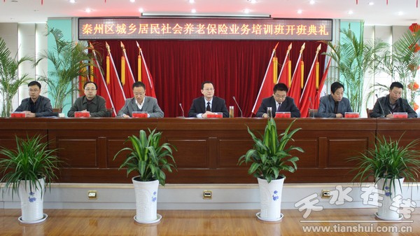 (秦州區(qū)外宣辦 劉可)9月21日上午,秦州區(qū)人力資源和社會(huì)保障局在區(qū)地稅局七樓會(huì)議室舉行了城鄉(xiāng)居民社會(huì)養(yǎng)老保險(xiǎn)經(jīng)辦人員業(yè)務(wù)培訓(xùn)班開班儀式,區(qū)城鄉(xiāng)居民社會(huì)養(yǎng)老保險(xiǎn)試點(diǎn)工作領(lǐng)導(dǎo)小組副組長、區(qū)委常委、區(qū)政府副區(qū)長武建成,區(qū)城鄉(xiāng)居民社會(huì)養(yǎng)老保險(xiǎn)試點(diǎn)工作領(lǐng)導(dǎo)小組成員、辦公室主任、區(qū)人社局局長劉睿智出席了開班儀式。區(qū)城鄉(xiāng)居民社會(huì)養(yǎng)老保險(xiǎn)中心工作人員,各鄉(xiāng)鎮(zhèn)、街道(社區(qū))經(jīng)辦人員等共計(jì)120余人參加了培訓(xùn)。開班儀式由區(qū)城鄉(xiāng)居民社會(huì)養(yǎng)老保險(xiǎn)試點(diǎn)工作領(lǐng)導(dǎo)小組成員、辦公室副主任、區(qū)人社局黨委書記、副局長段立建主持。