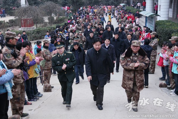 張明泰一行給部隊官兵送去了豬肉、帶魚、水果、蔬菜等價值2.6萬元的慰問品,并在娘娘壩中學和部隊首長進行座談交流,共敘魚水深情。張明泰說,68202部隊是一支有著光榮傳統(tǒng)的鋼鐵之師、英雄部隊,為地方經(jīng)濟發(fā)展、社會事業(yè)的繁榮進步作出了貢獻,特別當發(fā)生地震、山洪暴發(fā)等自然災(zāi)害時部隊官兵總是沖在第一線為黨和政府分憂解愁,為受災(zāi)百姓筑起安全屏障。他表示,秦州人民和各級黨委、政府將一如既往地做好擁軍工作,盡可能為部隊提供最好的服務(wù)和支持。