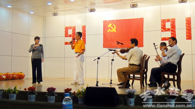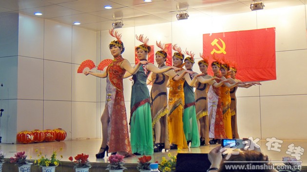 (秦州區(qū)外宣辦 永慶路社區(qū))2012年6月26日,在華天公寓樓會場,永慶路社區(qū)黨委組織廣大黨員和干部群眾舉行“向黨報告、為黨旗增輝”文藝演出暨表彰大會。社區(qū)居民300多人歡聚一堂,共同慶祝黨的生日,分享改革開放以來取得的豐盛成果。區(qū)委宣傳部、西關街道黨工委相關領導也應邀觀看演出并頒獎。