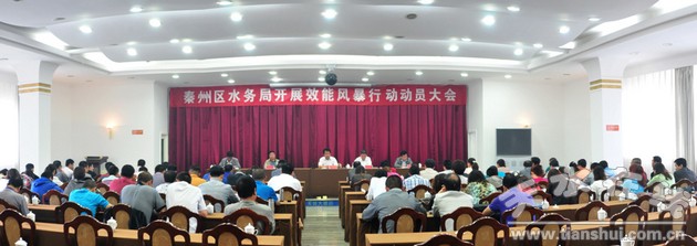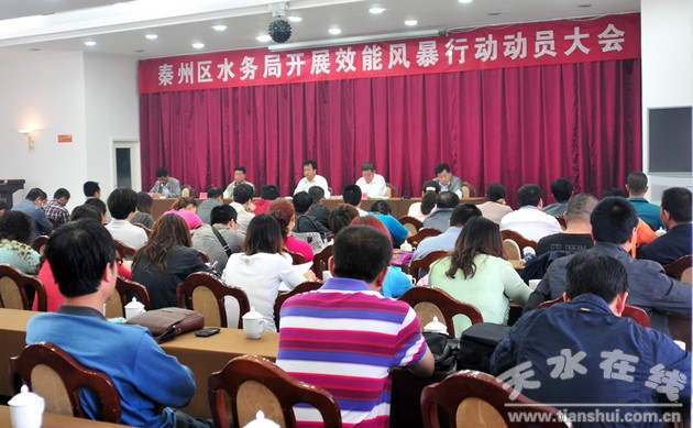 。ㄇ刂輩^(qū)水務(wù)局王羿)6月29日,秦州區(qū)水務(wù)局召開效能風(fēng)暴動(dòng)員大會(huì),進(jìn)一步安排部署在全局開展效能風(fēng)暴行動(dòng)的各項(xiàng)工作。局領(lǐng)導(dǎo)班子成員、局屬各單位負(fù)責(zé)人等100多人參加了動(dòng)員會(huì)議。會(huì)議由副局長、區(qū)水保局局長安葆嘉主持。局長劉書文做了講話,并就如何更好地開展效能風(fēng)暴行動(dòng)提出了明確要求。