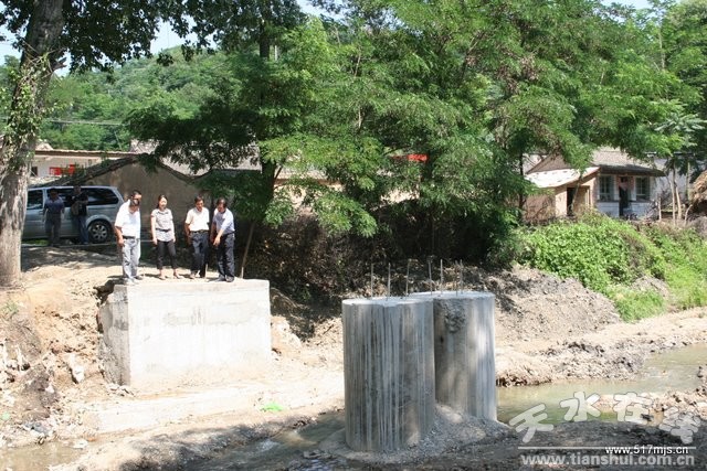 幫扶組現(xiàn)場(chǎng)察看幫扶項(xiàng)目村正在建設(shè)中的便民橋工程