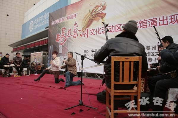 在歷年元旦、春節(jié)、伏羲文化旅游節(jié)、國慶節(jié)期間,組織開展各種主題性大型文藝演出,2012年舉辦了10余場以“歡樂送農(nóng)家”、“新春大拜年”、“文藝進社區(qū)”、“千臺大戲送農(nóng)村”、 “暢游秦州” 系列文化活動、“文化之春”廣場文藝演出、全區(qū)春節(jié)民間民俗社火匯演、“秦聲秦韻”秦州區(qū)首屆秦腔票友大賽、“逛節(jié)會—游景點---聽小曲”秦州小曲匯演、秦州皮影專場演出、山里紅民俗藝術(shù)團專場匯報等演出,這些演出活動得到了社會各界的一致好評,取得了良好的社會效應。
