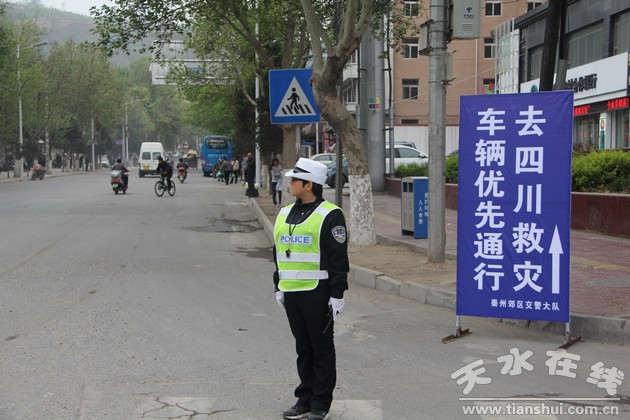“4.20”四川蘆山發(fā)生的7.0級地震,秦州境內(nèi)也有震感,為保障入川救災(zāi)車輛的及時(shí)安全通行,天水市秦州郊區(qū)交警大隊(duì)立即響應(yīng),按照公安部交管局的要求,自2013年4月21日起,迅速安排,立即出發(fā),投入進(jìn)入四川災(zāi)區(qū)車輛交通保障應(yīng)急管理各項(xiàng)工作。