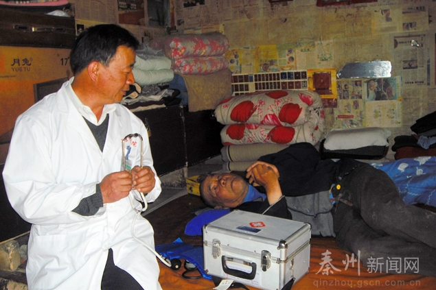(秦州區(qū)外宣辦)在人生的旅途中,有人追求氣壯如虹的事業(yè);有人用青春博取靚麗的功名;而他,只愿在歲月的幕后,追求一種樸實(shí)無(wú)華的寧?kù)o。他,就是天水鎮(zhèn)嘴頭村衛(wèi)生室村醫(yī),當(dāng)?shù)厝罕姸炷茉數(shù)泥l(xiāng)村醫(yī)生—郝吉有。