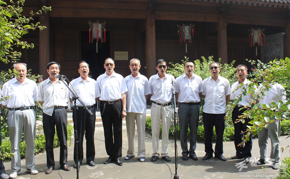 。ㄇ刂輩^(qū)外宣辦 辛志鋒 張永宏) 6月23日上午,天河之聲合唱團在市區(qū)景點北宅子為游客演出具有濃郁天水特色的文藝節(jié)目,歡慶公祭伏羲大典和伏羲文化旅游節(jié)。