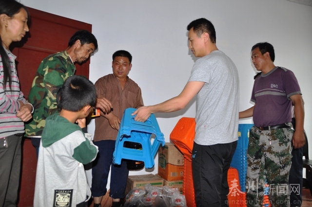 (秦州區(qū)外宣辦)7月14日,秦州區(qū)人口計(jì)生局局長(zhǎng)張恒剛一行,赴包抓安置點(diǎn)柳林村,為受災(zāi)群眾送去了120條小板凳、20多桶食用油和照明手電,幫助受災(zāi)群眾渡過(guò)難關(guān)。