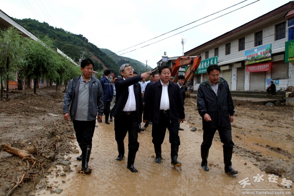7月27日,省委常委、常務(wù)副省長劉永富在連夜召開緊急會(huì)議,研究部署了搶險(xiǎn)救災(zāi)工作之后,休息了不到兩個(gè)小時(shí),便于當(dāng)日上午一大早與市領(lǐng)導(dǎo)馬世忠、王銳、張明泰、蔣曉強(qiáng)一道,趕赴災(zāi)情最為嚴(yán)重的秦州區(qū)娘娘壩鎮(zhèn),現(xiàn)場察看災(zāi)情,慰問受災(zāi)群眾,指導(dǎo)搶險(xiǎn)救災(zāi)。劉永富強(qiáng)調(diào),要采取一切措施,抓緊轉(zhuǎn)移安置受災(zāi)群眾,確保人民群眾生命安全。