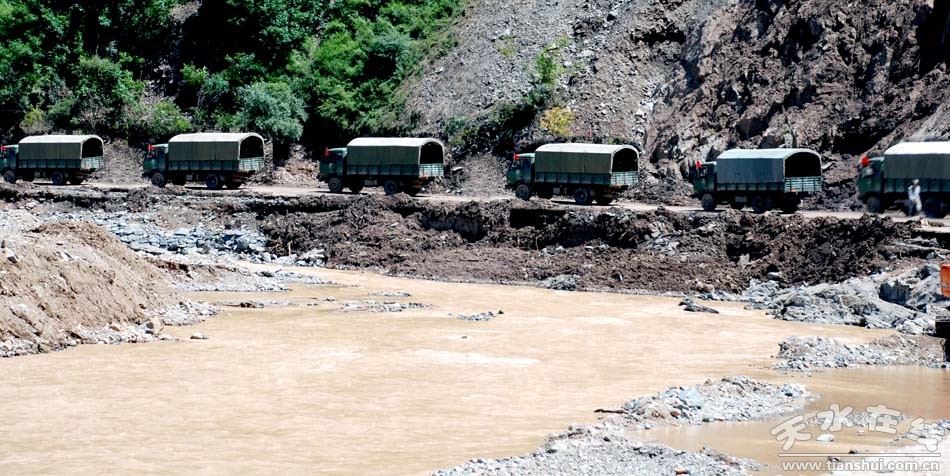 7月31日,在完成了岷縣地震災(zāi)區(qū)的搶險救災(zāi)工作后,教導隊又奉命趕赴秦州區(qū)娘娘壩災(zāi)區(qū),開展抗洪搶險救災(zāi)工作。當天中午,當教導隊的車輛到達天水經(jīng)過部隊師部時,未作片刻停留,官兵們只在車上面向師部敬禮后,便直赴娘娘壩災(zāi)區(qū),投入緊張的道路搶通等搶險救災(zāi)工作。
