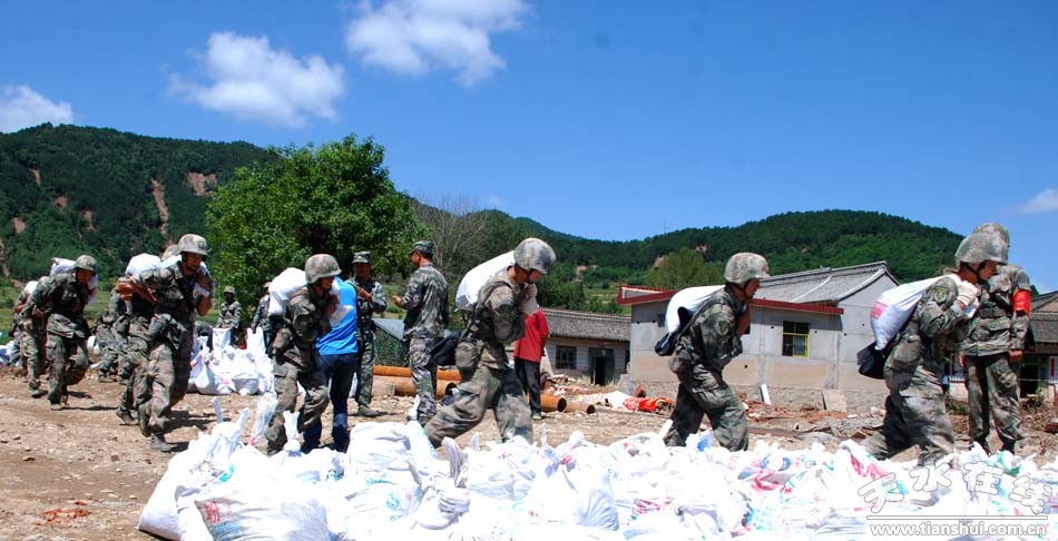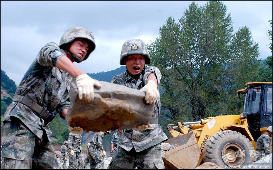 今年的8月1日,是中國人民解放軍第86個建軍節(jié)。在這個軍人特有的節(jié)日里,駐市蘭州軍區(qū)鋼鐵紅軍師教導隊的200多名官兵,在秦州區(qū)娘娘壩鎮(zhèn)重災(zāi)區(qū),頭頂烈日,揮汗如雨,為搶修水毀道路、鋪設(shè)柳林大橋橋基進行著艱苦奮戰(zhàn)。