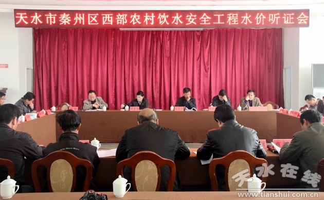 11月1日,秦州區(qū)西部農(nóng)村飲水安全工程供水價(jià)格聽(tīng)證會(huì)在天河大酒店十樓會(huì)議室舉行。來(lái)自藉口、華岐、楊家寺和秦嶺等鄉(xiāng)鎮(zhèn)的用水戶代表和受邀人大代表、政協(xié)委員、專家學(xué)者、區(qū)村民用水者協(xié)會(huì)和中介機(jī)構(gòu)相關(guān)負(fù)責(zé)人共30多人參加了聽(tīng)證會(huì)。聽(tīng)證會(huì)由秦州區(qū)物價(jià)局副局長(zhǎng)黃志懿主持。