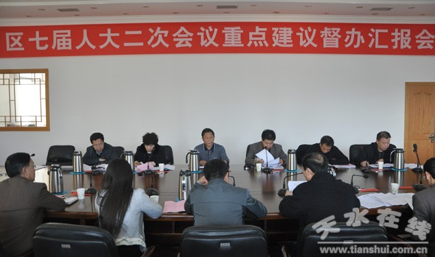 隨后召開了區(qū)七屆人大二次會議重點建議督辦匯報會,會議由文月平主持。會上,區(qū)衛(wèi)生局、區(qū)食藥監(jiān)局、區(qū)住建局、區(qū)商務(wù)局、區(qū)交通局、區(qū)財政局、區(qū)綜合執(zhí)法局、區(qū)國投公司等9個承辦單位分別就各自承辦的代表建議辦理情況作了匯報。參加督辦的區(qū)人大代表及常委會主任、副主任對辦理情況進行了評議發(fā)言。
