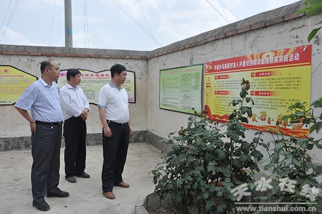 7月18日下午,天水市委常委、市委秘書長蔣曉強(qiáng)在參加完黨的群眾路線教育實(shí)踐活動聯(lián)系點(diǎn)秦州區(qū)中梁鄉(xiāng)黨委班子專題民主生活會后,深入整頓軟弱渙散基層黨組織聯(lián)系點(diǎn)秦州區(qū)中梁鄉(xiāng)馬家窯村,實(shí)地調(diào)研指導(dǎo)整頓工作。蔣曉強(qiáng)強(qiáng)調(diào),要緊緊抓住教育實(shí)踐活動開展的有利契機(jī),切實(shí)抓好馬家窯村黨組織整頓工作,使馬家窯村黨組織真正成為自身過得硬、群眾信得過的建強(qiáng)戰(zhàn)斗堡壘。