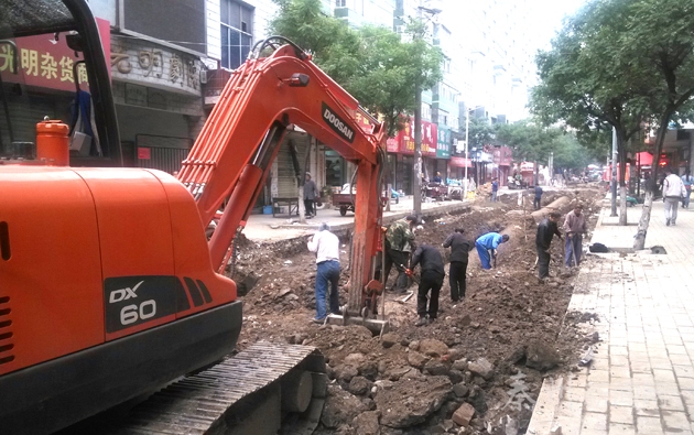 。ㄇ刂輩^(qū)外宣辦 辛志鋒)10月7日,秦州區(qū)光明巷道路改造工程施工現(xiàn)場一派熱火朝天的景象。大型機械正在忙碌地作業(yè),挖掘機不停展臂深挖,運土車來回奔跑高效運作,工人們揮舞著鐵鍬正在翻土。