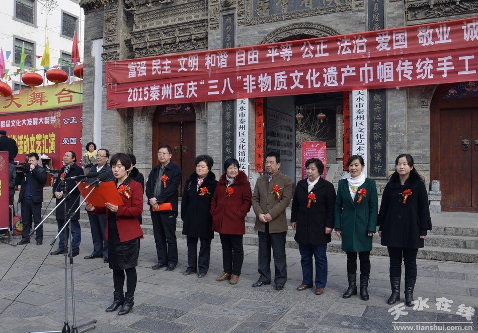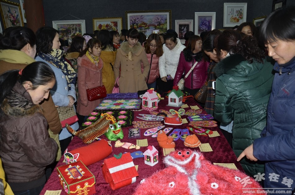 傳手工技藝,展巾幗風(fēng)采。 為了隆重慶祝第105個(gè)“三八”國際勞動(dòng)?jì)D女節(jié),弘揚(yáng)優(yōu)秀傳統(tǒng)文化,激發(fā)廣大婦女的創(chuàng)新精神,展示積極、健康、向上的巾幗風(fēng)采。3月6日上午,由秦州區(qū)文廣局、區(qū)婦聯(lián)聯(lián)合舉辦的秦州區(qū)慶“三八”非物質(zhì)文化遺產(chǎn)巾幗傳統(tǒng)手工作品展在區(qū)文化館舉行。天水市婦兒工委辦主任張亞龍,秦州區(qū)委常委、組織部長王永剛,區(qū)人大副主任陳蓉華、胡秀玉、伏承祥,區(qū)政協(xié)副主席郭金霞,原區(qū)政協(xié)主席、婦女聯(lián)誼會(huì)會(huì)長霍秀清,天水老年大學(xué)常務(wù)副校長董麗萍等領(lǐng)導(dǎo)以及全區(qū)各鄉(xiāng)鎮(zhèn)、街道、部門的500余名婦女干部參加開展儀式。