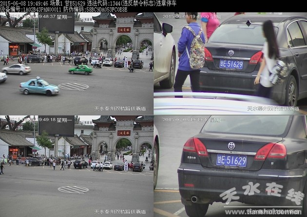 ▲甘E51629于2015年6月8日在秦州區(qū)雙橋路伏羲廟違法停放,依據(jù)《道路交通安全法》違反禁令標(biāo)志處200元罰款記3分。
