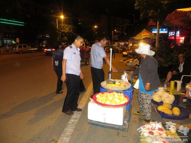 入夏以來(lái),秦州城區(qū)夜間部分路段攤點(diǎn)隨意占道經(jīng)營(yíng)阻礙交通、喇叭叫賣(mài)噪聲擾民時(shí)有發(fā)生,影響了夜間市容環(huán)境秩序。為了給市民創(chuàng)造一個(gè)整潔有序的夜間市容環(huán)境,秦州區(qū)執(zhí)法局結(jié)合環(huán)境綜合整治行動(dòng)持續(xù)開(kāi)展為期15天夜間市容秩序整治。