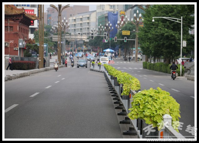此次“國慶”美化工程以“盛世華章,魅力秦州”為主題,以龍城廣場為中心向四周主要道路、重要節(jié)點展開,采取組團(tuán)方式,形成“兩出入口”、“兩廣場”、“兩道路”、“四什字”的擺放格局!皟沙隹凇奔刺於ǜ咚俪隹、秦麥高速出口;“兩廣場”即龍城廣場、文廟小廣場;“兩道路”即民主路、建設(shè)路;“四什字”即青年南北路什字、公園路什字、合作路什字、藉濱大橋什字,集中布置花卉12萬盆,并結(jié)合非洲鳳仙、北京小菊、百日草、金葉薯、小麗花等新的花卉品種和色彩,擺放成花缽、花柱、花壇、花境等形式,充分營造景觀亮點,提升秦州魅力,烘托節(jié)日氛圍,以嶄新的城市美化面貌喜迎建國66周年。
