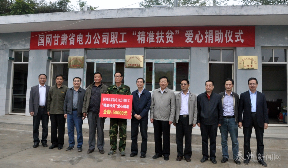 (秦州區(qū)外宣辦 辛志鋒)9月28日,國家電網(wǎng)甘肅省電力公司黨組書記、副總經(jīng)理王江亭一行6人來到秦州區(qū)關(guān)子鎮(zhèn)流水村,就該村精準(zhǔn)扶貧工作進(jìn)行調(diào)研,看望慰問了“熱愛國網(wǎng)老年之星”董永忠同志,并為董永忠“愛心公益協(xié)會”捐款50000元。