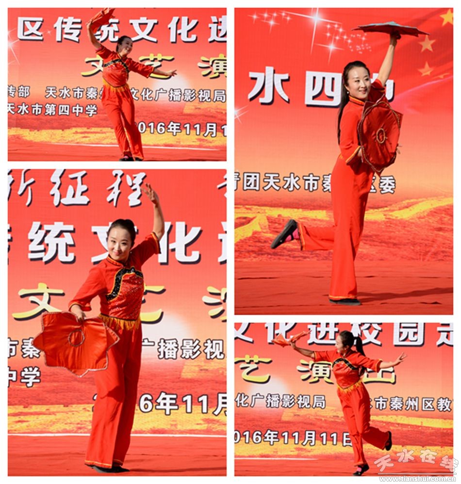 秦州區(qū)傳統(tǒng)文化進(jìn)校園活動,依托秦州悠久的祖脈文化,通過非遺知識講座、民間絕活展示、非遺問卷調(diào)查、書畫名家筆會、傳統(tǒng)技藝展演、綜合文藝演出等大家喜聞樂見的不同形式,把傳統(tǒng)音樂、舞蹈、書法、國畫、武術(shù)、小曲、秦腔、剪紙、泥塑、風(fēng)箏、年畫、茶藝、雜技等非物質(zhì)文化遺產(chǎn)和高雅藝術(shù)帶進(jìn)校園、走進(jìn)課堂,讓廣大師生近距離了解傳統(tǒng)文化,有重點、有選擇的展示中華民族輝煌歷史中優(yōu)秀傳統(tǒng)文化的保護(hù)、傳承和創(chuàng)新成果。