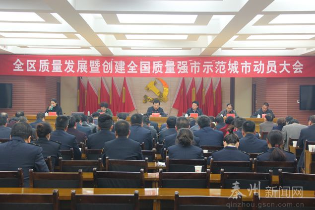 。ㄇ刂輩^(qū)外宣辦)11月21日,秦州區(qū)召開質(zhì)量發(fā)展暨創(chuàng)建全國質(zhì)量強(qiáng)市示范城市工作動(dòng)員大會(huì),貫徹落實(shí)國務(wù)院《質(zhì)量發(fā)展綱要(2011—2020)》和市委、市政府關(guān)于創(chuàng)建全國質(zhì)量強(qiáng)市示范城市有關(guān)會(huì)議精神,總結(jié)近年來全區(qū)質(zhì)量發(fā)展工作,對創(chuàng)建全國質(zhì)量強(qiáng)市示范城市工作進(jìn)行安排部署。市委常委、區(qū)委書記雷鳴出席會(huì)議并講話。