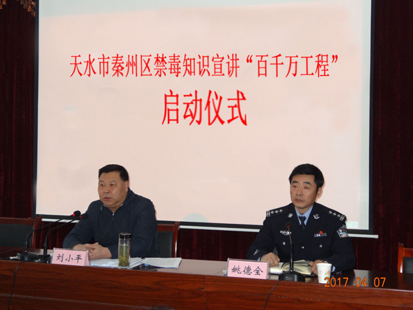 啟動(dòng)儀式上,劉小平在作動(dòng)員講話中指出,禁毒知識(shí)宣講“百千萬工程”是按照中央、省、市禁毒工作要求,將禁毒預(yù)防教育工作納入干部培訓(xùn)計(jì)劃和青少年教育、重點(diǎn)高危人群教育、全民普及教育的一項(xiàng)重要的民心工程,對(duì)于提高全民特別是廣大黨員干部、青少年的禁毒知識(shí)水平,加強(qiáng)禁毒宣傳教育,將禁毒預(yù)防教育工作落到實(shí)處起到積極的推動(dòng)作用,對(duì)組織好、發(fā)動(dòng)好群眾參與禁毒斗爭的熱情,切實(shí)筑牢禁毒防火墻,在全區(qū)掀起禁毒人民戰(zhàn)爭新高潮具有十分重要的意義。各有關(guān)單位要按照《秦州區(qū)百名領(lǐng)導(dǎo)宣講禁毒知識(shí)活動(dòng)方案》要求,切實(shí)把毒品預(yù)防教育作為解決毒品問題的治本之策,充分發(fā)動(dòng)禁毒委各級(jí)領(lǐng)導(dǎo)、基層干部、民警、專家學(xué)者到學(xué)校和公共娛樂場(chǎng)所授課,在授課活動(dòng)的廣度、深度和難點(diǎn)問題上下功夫,始終把青少年教育、重點(diǎn)高危人群教育、全民普及教育做為授課活動(dòng)的出發(fā)點(diǎn)和落腳點(diǎn),把在學(xué)校授課和公共復(fù)雜場(chǎng)所宣傳有機(jī)結(jié)合起來,循序漸進(jìn),不斷改進(jìn)授課方式,實(shí)現(xiàn)我區(qū)禁毒宣傳教育工作的跨越式提升。