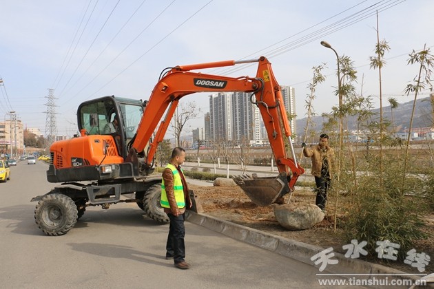 。ㄋ模┏鞘袌@林小品、園林設(shè)施建設(shè)完善方面。截至目前,已完成羲皇大道、成紀(jì)大道護(hù)欄維修340m;完成藉水北路景觀石擺放19處;完成東橋頭南北花壇擋墻鋪設(shè)60m,人行通道鋪裝45㎡,花池道牙鋪裝90m,雨花石、大理石路面鋪設(shè)70㎡,完成園林雕塑大理石基座鋪設(shè)12㎡、廣告牌基座破除兩處27㎡;完成西橋頭西北花壇汀步石鋪裝20m;完成天定高速出入口西側(cè)綠地灌溉設(shè)施鋪裝460m;迎賓橋北兩側(cè)花壇上水管道安裝200m;地下通道東南出口新建花壇邊沿蘑菇石鋪設(shè)32㎡、大理石面層鋪設(shè)21㎡。同時(shí)積極聯(lián)系海林廠,并協(xié)同區(qū)綜合執(zhí)法局,對(duì)五里鋪東北花園內(nèi)的臨設(shè)攤點(diǎn)和臨時(shí)建筑進(jìn)行拆除,拆除工作將于近期結(jié)束。