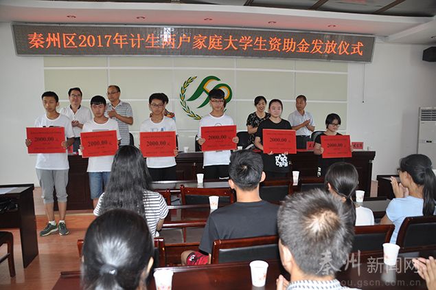 為繼續(xù)落實(shí)好計劃生育利益導(dǎo)向惠民政策,幫助獨(dú)生子女領(lǐng)證戶和二女節(jié)育戶(簡稱“兩戶”)困難家庭大學(xué)生子女圓夢大學(xué)校園,8月9日下午,秦州區(qū)舉行2017年度“兩戶”大學(xué)生資助金發(fā)放儀式。區(qū)委常委、宣傳部長曹亞玲、區(qū)人大副主任崔麗霞、區(qū)政協(xié)副主席郭金霞出席了發(fā)放儀式,受到資助的一本以上院校獨(dú)生子女困難家庭大學(xué)生、7個街道計生辦主任以及部分大學(xué)生家長約60多人參加。