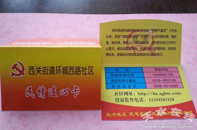 近年來,環(huán)西社區(qū)黨委堅(jiān)持把服務(wù)居民作為主責(zé)主業(yè),緊貼居民實(shí)際,緊盯居民需求,以建設(shè)服務(wù)型黨組織為抓手,創(chuàng)新服務(wù)方式,拓寬服務(wù)功能,建立以“民呼我應(yīng)、民思我想、民需我為、民困我?guī)汀睘槔砟畹摹懊袂闅庀笳尽,采取入戶走訪、民情熱線、民情信箱、民情連心卡、民情時(shí)令會、網(wǎng)站留言等方式,發(fā)布民情“晴雨表”,繪制民情“氣象圖”,收集居民煩心事,捕捉居民熱點(diǎn)事,解決居民困難事,辦好居民要緊事,形成了點(diǎn)線面結(jié)合,全方位覆蓋的民情信息反饋處置網(wǎng)絡(luò),打通了民情收集、服務(wù)群眾的“最后一公里”。