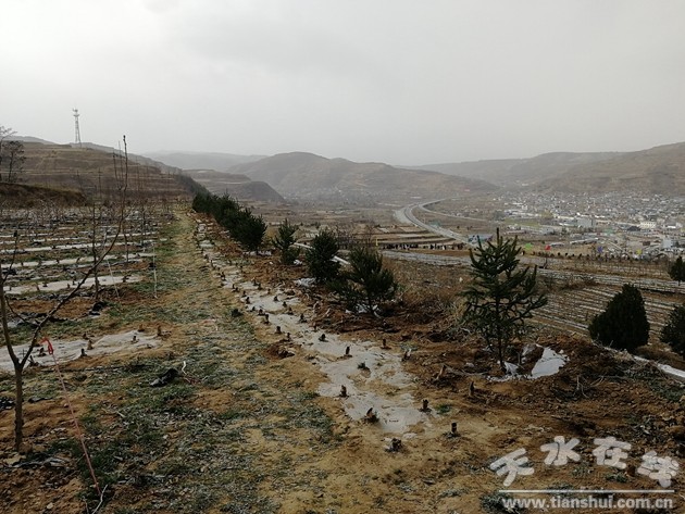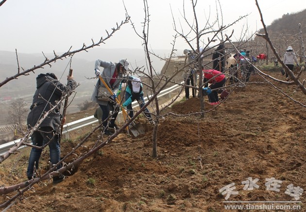 植樹現(xiàn)場,大家兩三人一組,有的手拿鐵鍬,有的手拿洋鎬,以飽滿的熱情、十足的干勁投入到活動中。在挖坑、栽樹、填土、澆水、鋪膜等各個環(huán)節(jié)中,大家緊密配合、相互協(xié)作,盡管大汗淋漓,仍干得熱火朝天。經(jīng)過大家?guī)讉小時的辛勤勞動,146棵新栽的樹苗便迎風(fēng)挺立,為春意盎然的三月增添一抹綠色。
