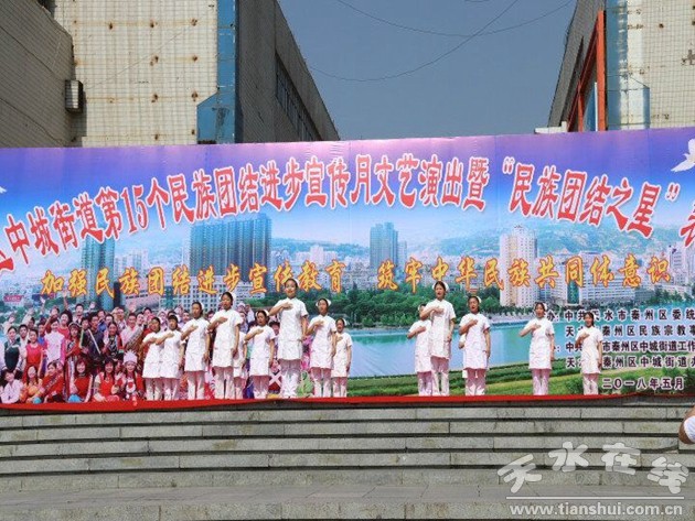 五月的秦州,花團錦簇。5月25日,秦州區(qū)中城街道辦事處在龍城廣場舉行第15個民族團結(jié)進步宣傳月文藝演出暨“民族團結(jié)之星”表彰儀式,對在轄區(qū)民族團結(jié)進步創(chuàng)建工作中做出積極貢獻的劉俊林、米庚亮、方輝、保海虹、馬琳、蘇玉梅、馬小紅、吳明花、楊健、趙佳彥10人授予了“民族團結(jié)之星”的榮譽稱號,并頒發(fā)榮譽證書。街道、轄區(qū)各單位領(lǐng)導(dǎo)、非公企業(yè)、社會組織、轄區(qū)清真寺負責人、各社區(qū)居民代表共計500余人參加了此次表彰儀式。